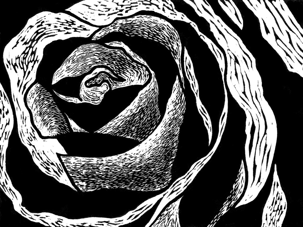 Black Rose – Linocut Relief Print